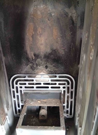 Nettoyage complet de la chambre de combustion, des surfaces d’échange, du conduit de raccordement, et de la vitre.